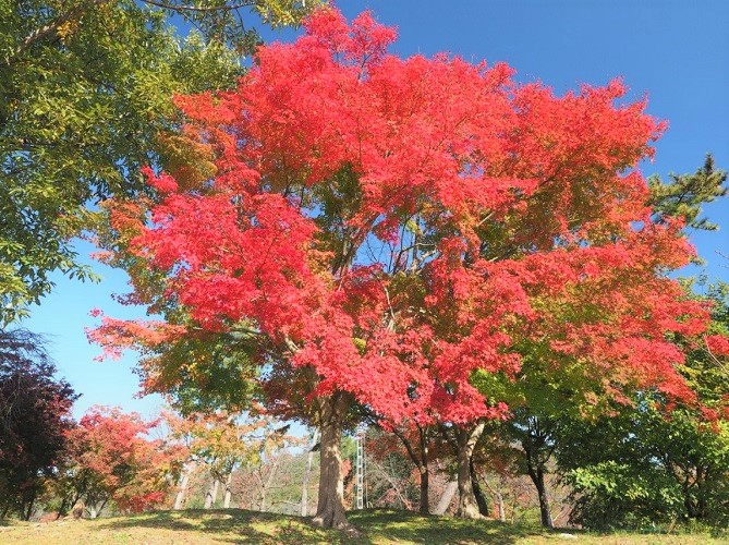 ると真っ赤に紅葉し始めるんだぞ。本当に真っ赤な色に紅葉するから、見たことがない人は是非見に来てほしいな! 見ればきっと感動するぞ。